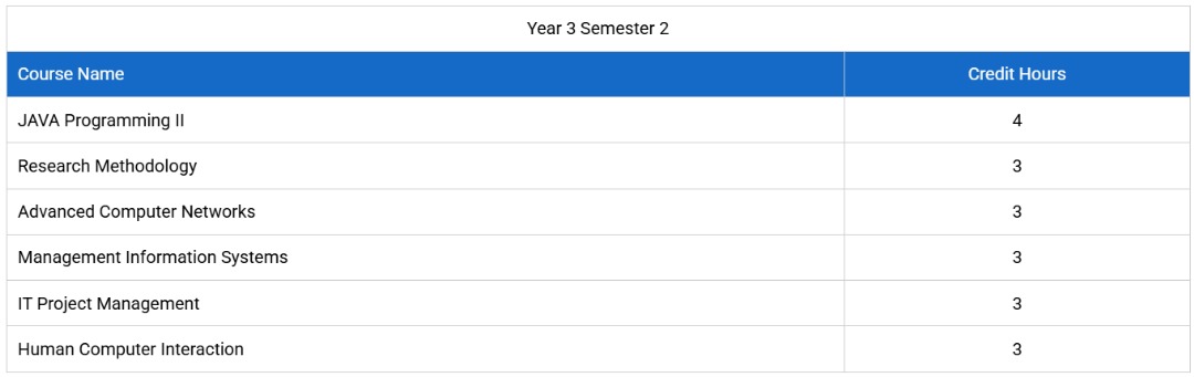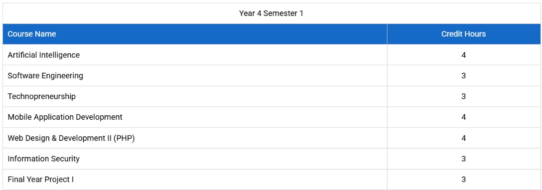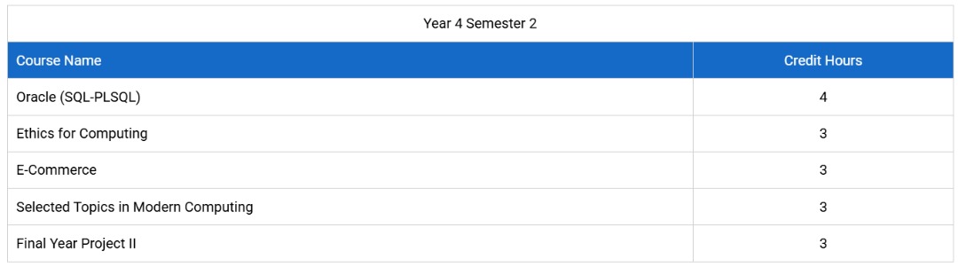 - Bachelor of Science in Computer Science (Five Years).